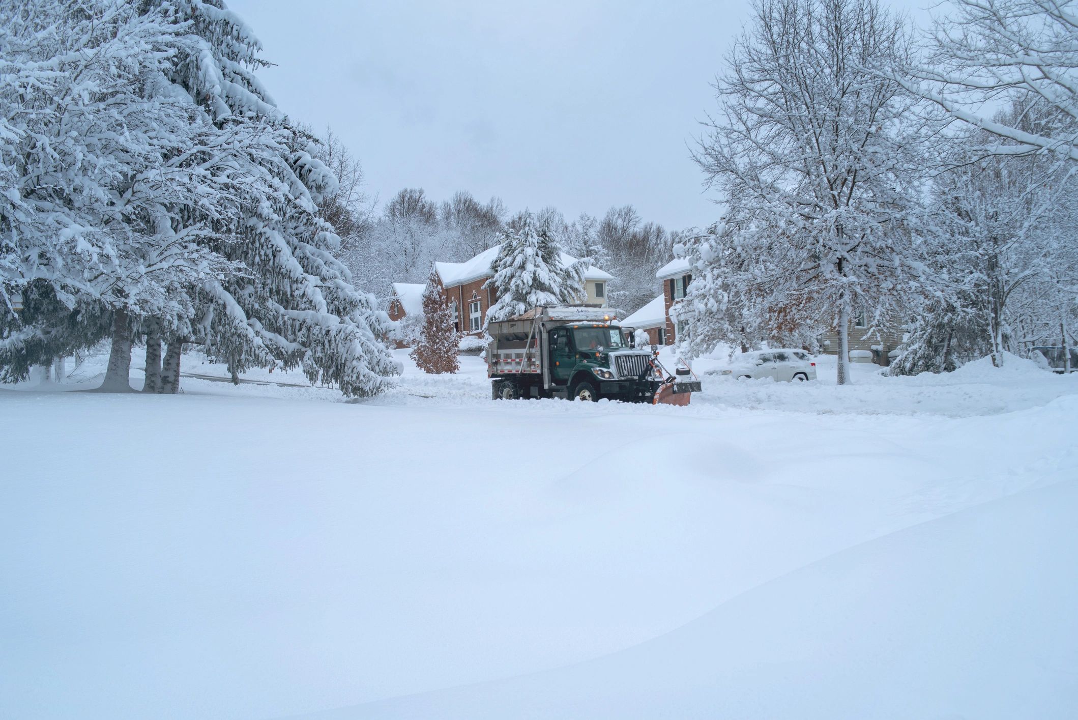 Use caution on icy sidewalks and roads; give plows room to operate and avoid parking in posted areas.